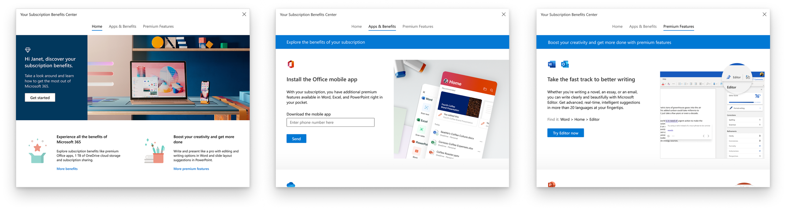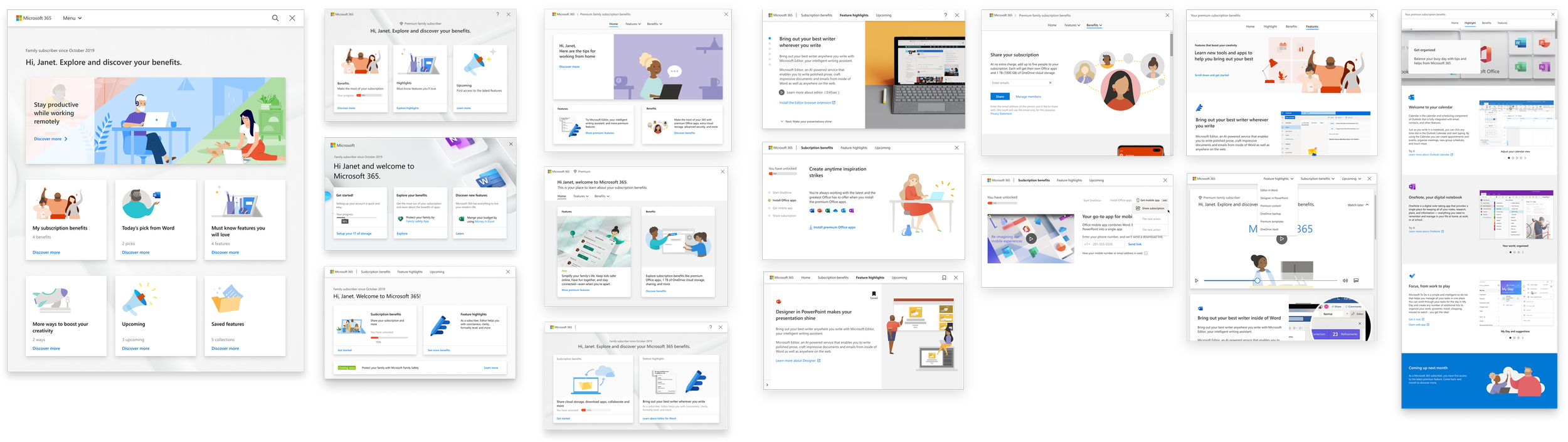 An interactive discovery space that encourages feature exploration across the Microsoft 365 ecosystem: