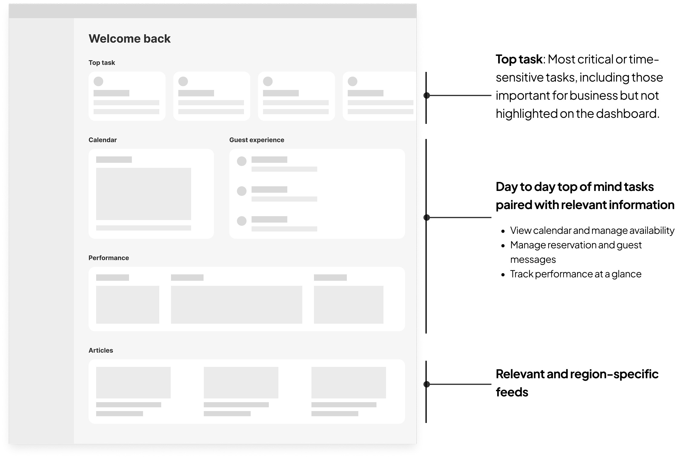 This homepage framework was successfully adapted by Expedia hotel partner dashboard, enabling reusability.