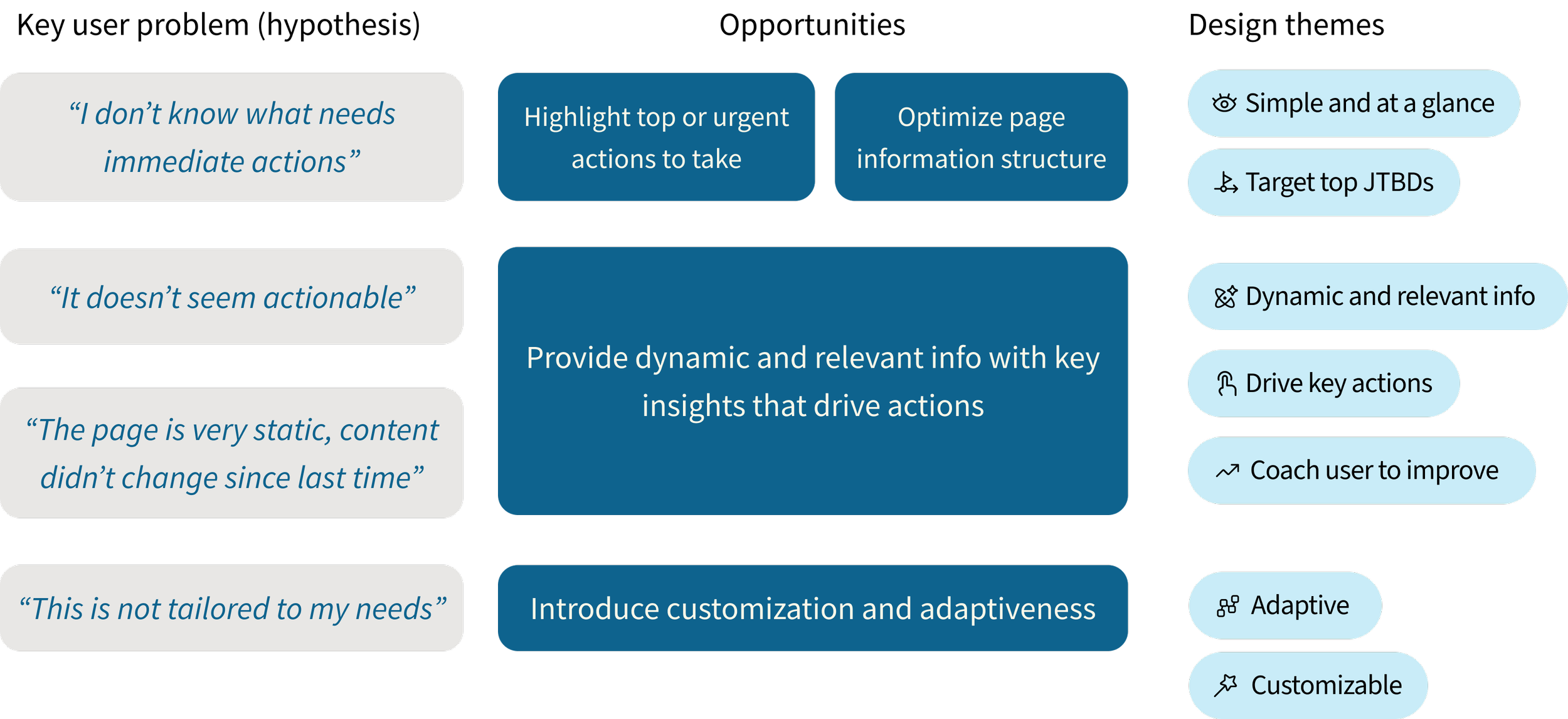 I drove (and co-led with product manager) a comprehensive discovery process. This approach ensured our solutions were grounded in genuine user needs while addressing business priorities across multiple product domains